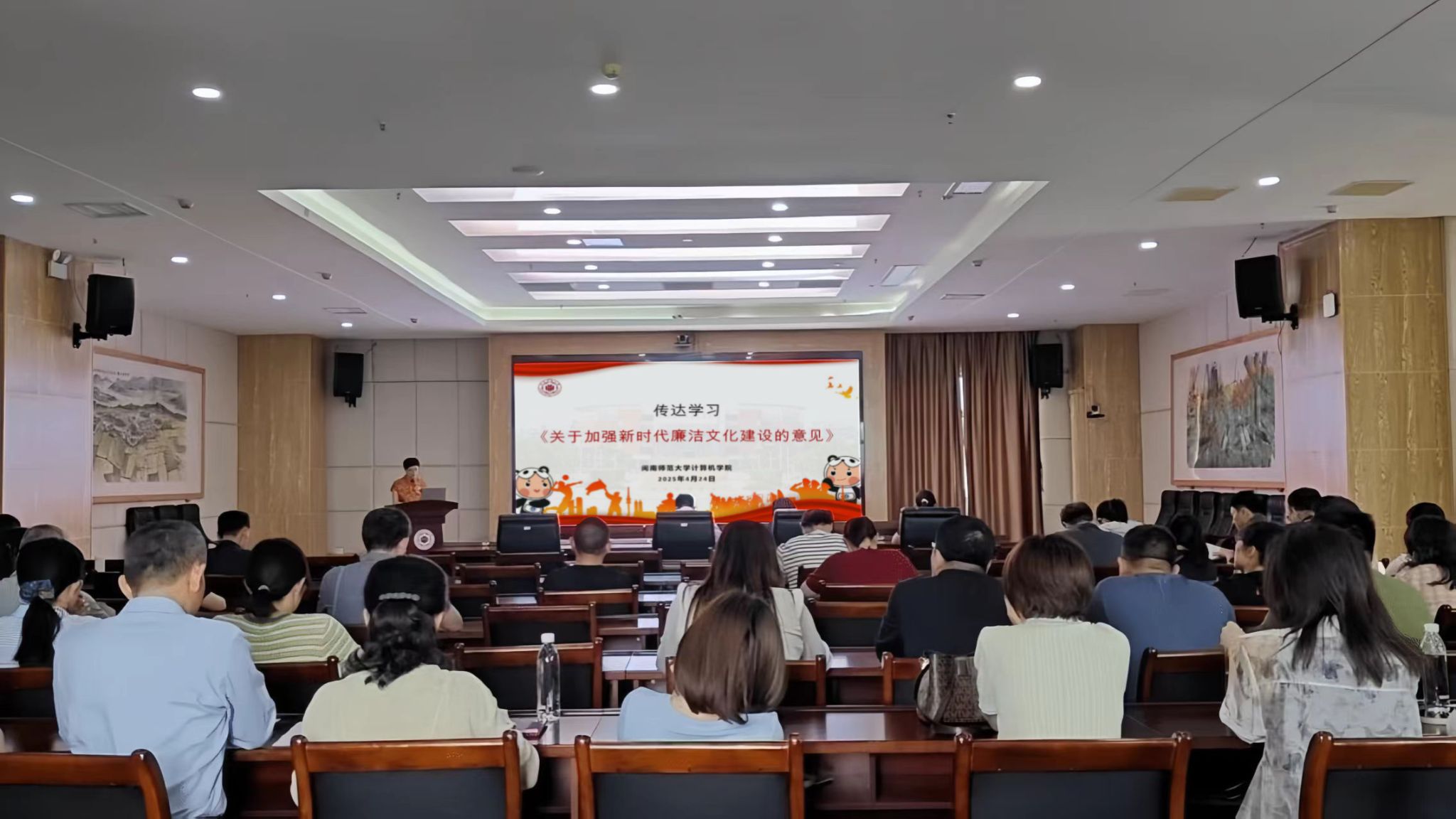 4月24日下午,计算机学院召开教职工大会,重温学习《关于加强新时代廉洁文化建设的意见》精神,通报巡察集中整改进展和学院2024年度绩效奖励分配方案情况,并对教风学风建设等近期工作作出部署。全体党委班子成员出席会议,全体教职工参加会议。