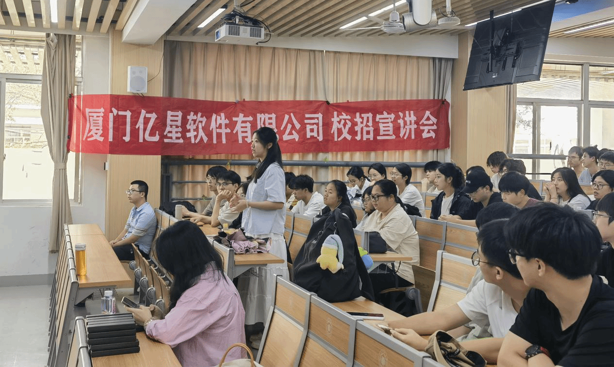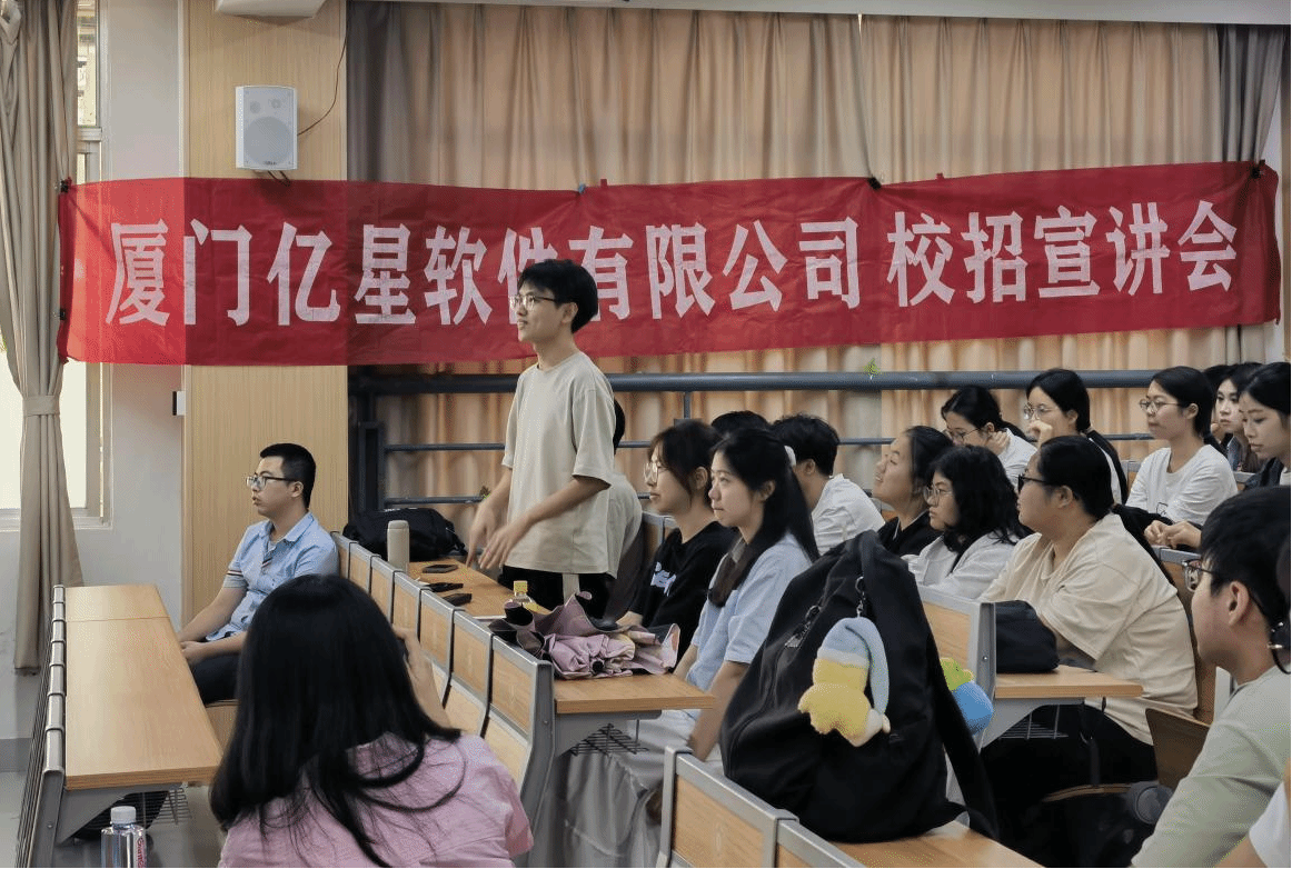 10月30日中午,厦门亿星软件有限公司专场招聘宣讲会于砺志楼225教室顺利举行。本次宣讲会吸引了我院2026届各专业众多毕业生积极参与。