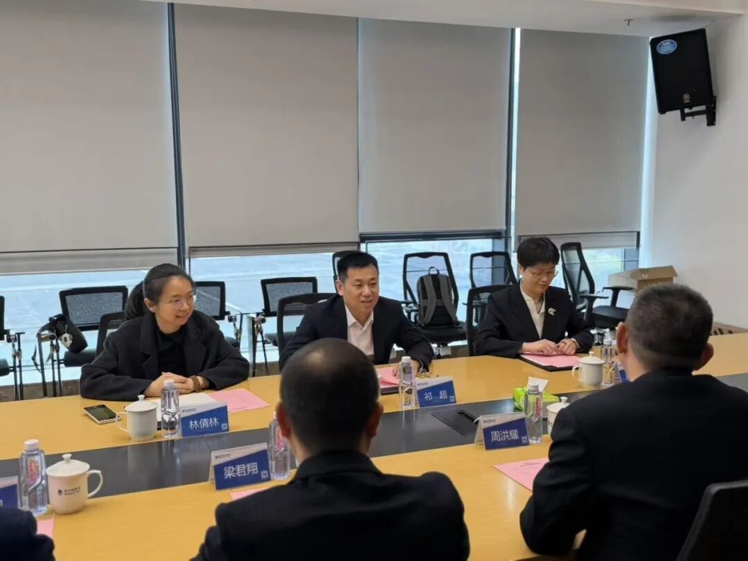 最后一站来到新大陆时代科技有限公司。在企业展厅,祁超一行全面了解了新大陆科技集团在数字技术、物联网、人工智能等领域的发展历程与产业布局。在随后召开的座谈会上,双方围绕专业共建、实训实习基地建设、产业学院协同育人等方面展开了多维度探讨,并就共建高水平实践教学平台、联合开发教学资源等交换意见。