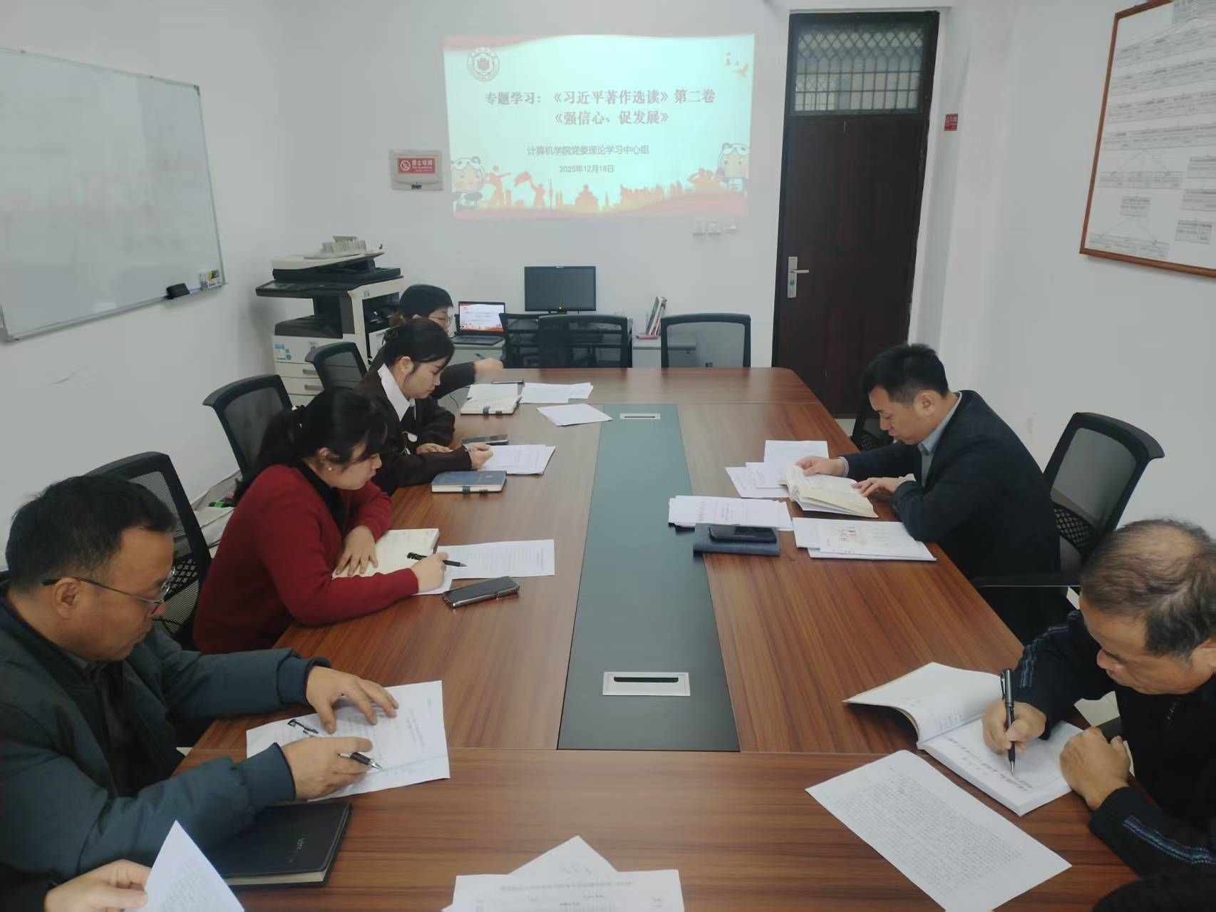 12月18日上午,计算机学院2025年12月第一次党委理论学习中心组专题学习会在科北1109会议室召开。学院党委书记祁超主持并领学,学院党委领导班子全体成员参加学习。