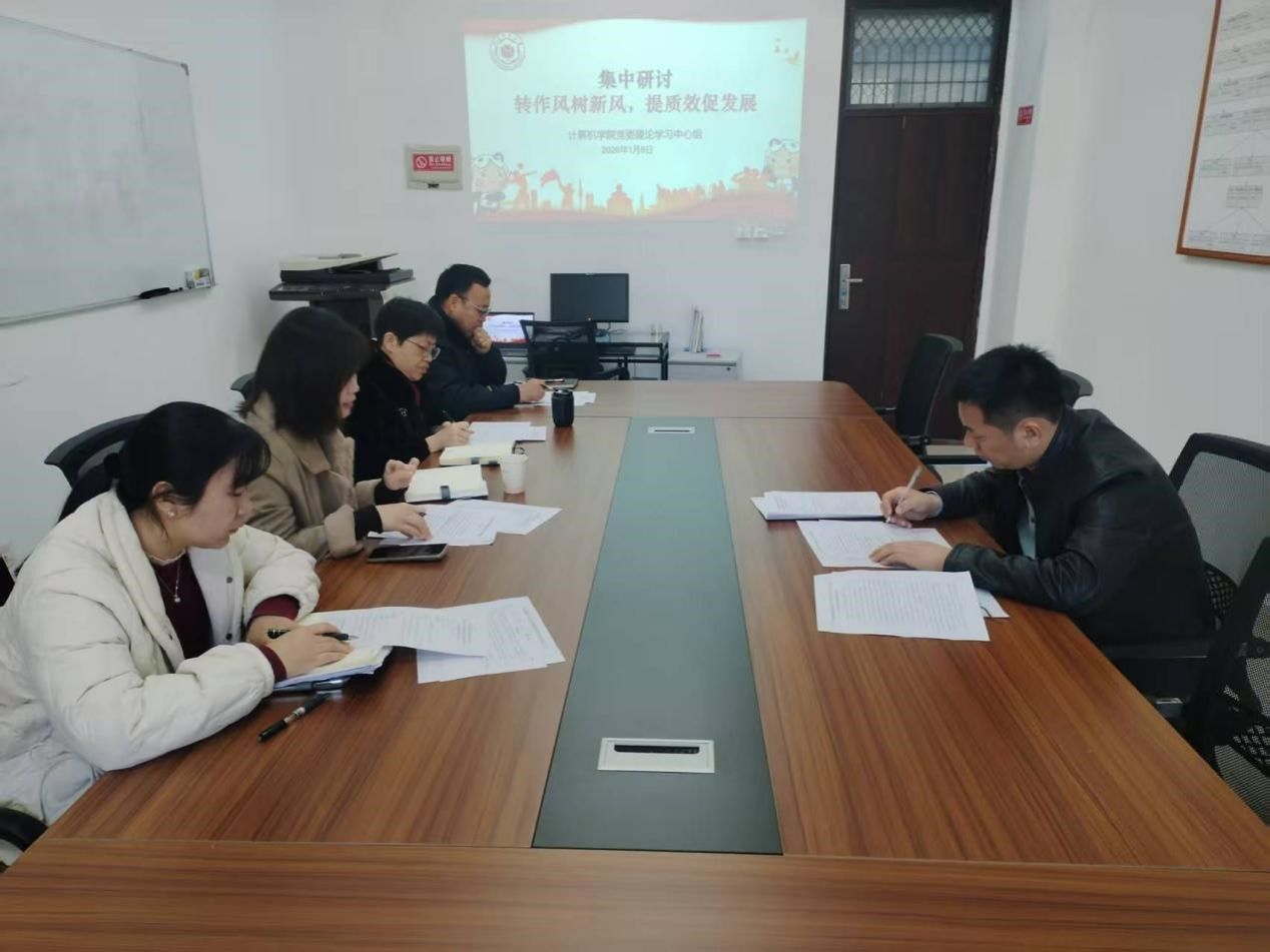 为深入学习贯彻习近平总书记重要讲话精神,筑牢民主生活会思想基础,1月8日上午,计算机学院党委理论学习中心组在科北1109召开2025年度民主生活会会前学习会暨2026年1月第一次专题学习会。会议由学院党委书记祁超主持,学院党委领导班子全体成员参加。
