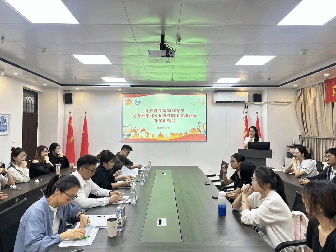 为全面加强班集体建设,夯实基层团组织基础,充分展现各班级在思想引领、学风营造、社会实践与集体建设等方面的工作成果,3月30日,计算机学院在科技信息楼1106会议室召开2025年度优秀班集体、五四红旗团支部评优答辩会。