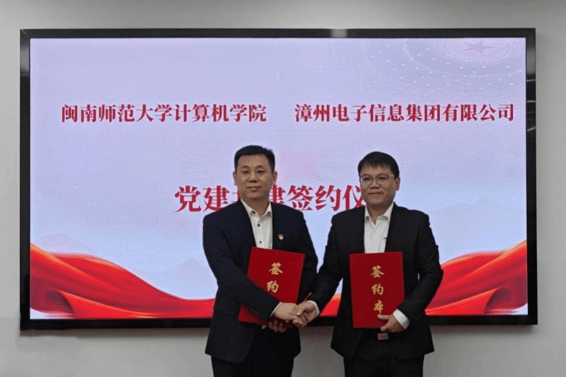 11月28日,闽南师范大学计算机学院与漳州电子信息集团党建共建签约仪式举行。此次签约既是双方深化校企协同的战略举措,更是以党建为引领,推动产教深度融合、赋能区域数字产业升级的重要实践,为漳州数字经济高质量发展增添新活力。